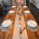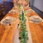 - Zachte chiffon tafelloper en luxe linnen servetten.