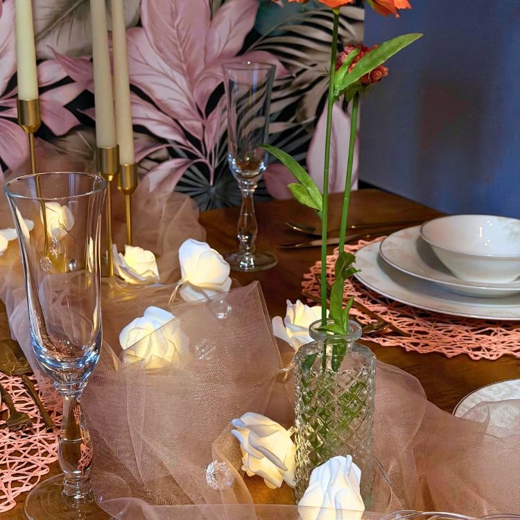 Zorgvuldig samengesteld om een romantische en verfijnde setting te creëren.